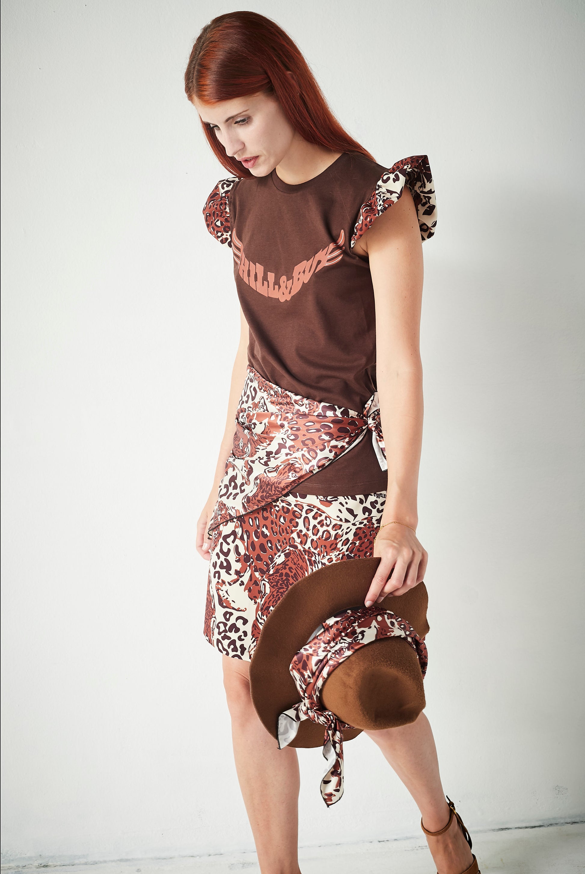 Camiseta de algodón en color marrón con corte recto y cuello redondo. Un básico renovado con un detalle distintivo que aporta personalidad.
