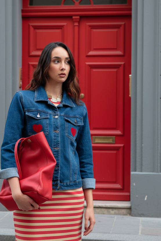 Cazadora Vaquera Azul corta, con bolsillos y cierre con botones metálicos. Detalle de estampación en la parte trasera y delantera.